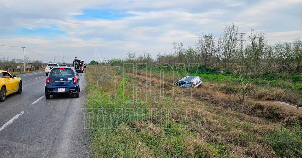 Tres lesionados, dejó choque-volcadura en la Ribereña en Reynosa