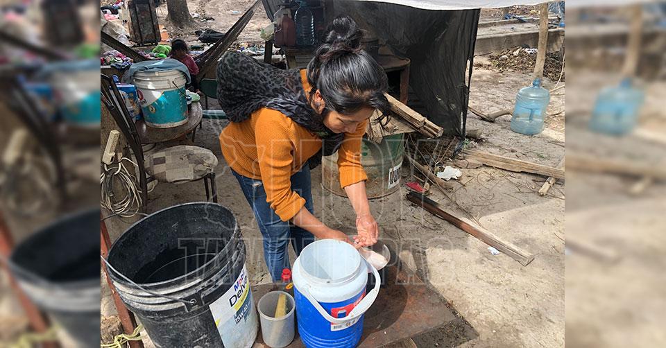 Después de encender leña para cocinar su comida, María en lo que prepara las piezas de pollo para hacer un caldo para ella y sus hijos, narra cómo tuvieron que abandonar todo luego de la llegada de grupos delincuenciales a estas comunidades.