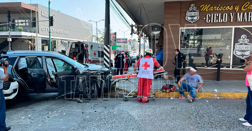 Debido al fuerte impacto este último vehículo fue proyectado contra los postes de contención de un negocio, resultando cuatro involucrados en el percance con lesiones que fueron atendidas por paramédicos de la Cruz Roja.