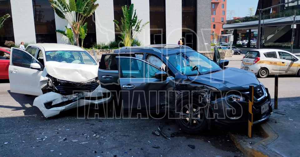 Tampico, Tamaulipas. - El caos se apoderó la tarde de este lunes de la Avenida Hidalgo en la ciudad de Tampico, al registrarse el fuerte choque entre dos camionetas que dejó a cuatro personas lesionadas, y debido al intenso tráfico que se formó se presentaron dos choques más que obligaron al cierre de un tramo de esta importante vía durante prolongado lapso de tiempo.