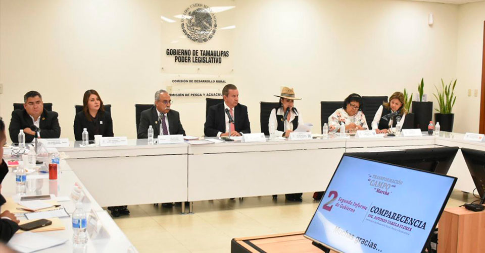 Ciudad Victoria, Tamaulipas. – El secretario de Desarrollo Rural, Pesca y Acuacultura, Antonio Varela Flores, asistió a rendir su comparecencia ante el Congreso del Estado, con motivo del Segundo Informe de Gobierno de Américo Villarreal Anaya, en el cual estuvieron presentes diputadas y diputados integrantes de la Comisión de Desarrollo Rural, y reiteró que la Secretaría trabaja en apoyo al campo, y lo orienta en dos direcciones fundamentales: con la atención preferente al sector social y el trabajo conjunto con los productores, en la definición de las decisiones estratégicas del sector.