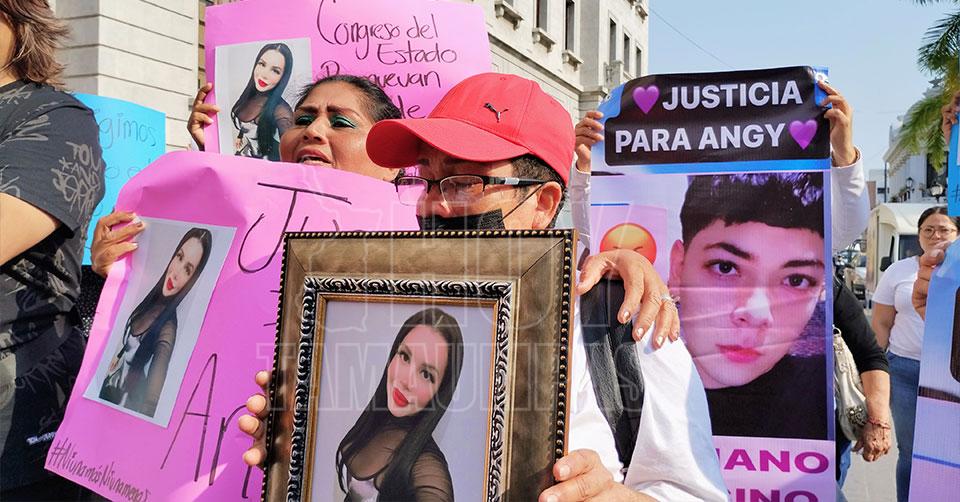 Tampico, Tamaulipas. - Una manifestación de protesta que incluyó una marcha y cierre de la calle Cristóbal Colón, frente al Palacio Municipal de Tampico, realizaron familiares y amigos de Angie Villarreal, quien murió a manos de un agresor que presuntamente era su ex pareja sentimental, para quien piden todo el peso de la ley, pues no están resueltos a que el crimen quede impune.