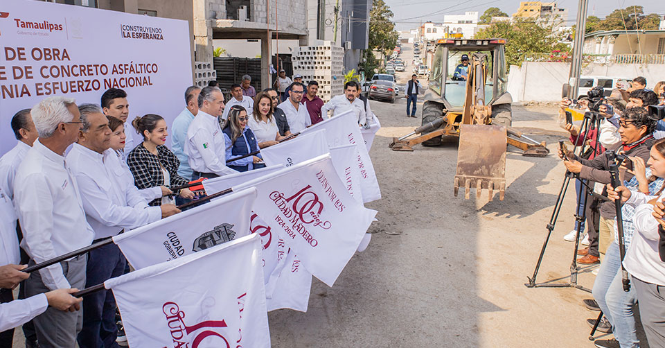 Ciudad Madero, Tamaulipas. - Una intensa jornada de trabajo, realizó este jueves el alcalde Adrián Oseguera Kernion, donde dio arranque a importantes obras de pavimentación, así como de construcción de puentes peatonales, con el principal objetivo de seguir impulsando el desarrollo vial de Ciudad Madero.
