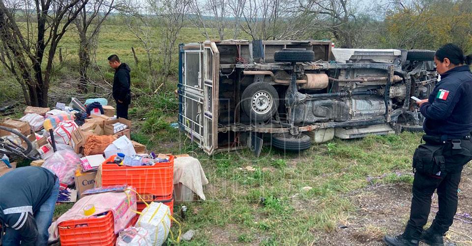 San Fernando, Tamaulipas. - Una falla mecánica en un vehículo proveniente de Matamoros con destino a Soto La Marina, provocó que su conductor perdiera el control y volcara en el kilómetro 1 del Libramiento de San Fernando.