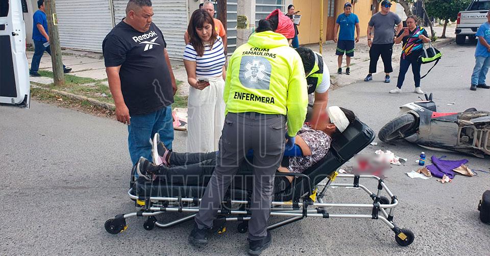 Ama de casa resultó lesionada al sufrir accidente en su motoneta en Ciudad Victoria