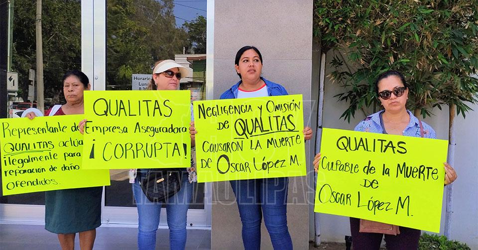 Tampico, Tamaulipas. - Familiares y amigos de una mujer que perdió a su esposo en un accidente vial a finales de 2023 protestaron en contra de la aseguradora Qualitas, pues esta empresa fue totalmente omisa en el caso de darle un pase a un hospital privado y que esta situación derivó que su pareja empezara a decaer en la salud hasta que murió el pasado 28 de diciembre.