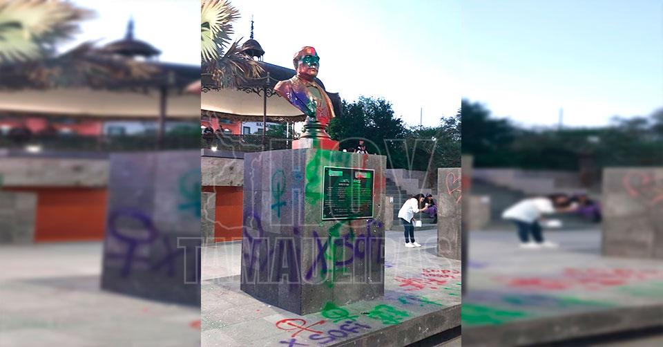 ¡Lo vuelven a hacer! Feministas se manifiestan con pintas a monumentos en Reynosa