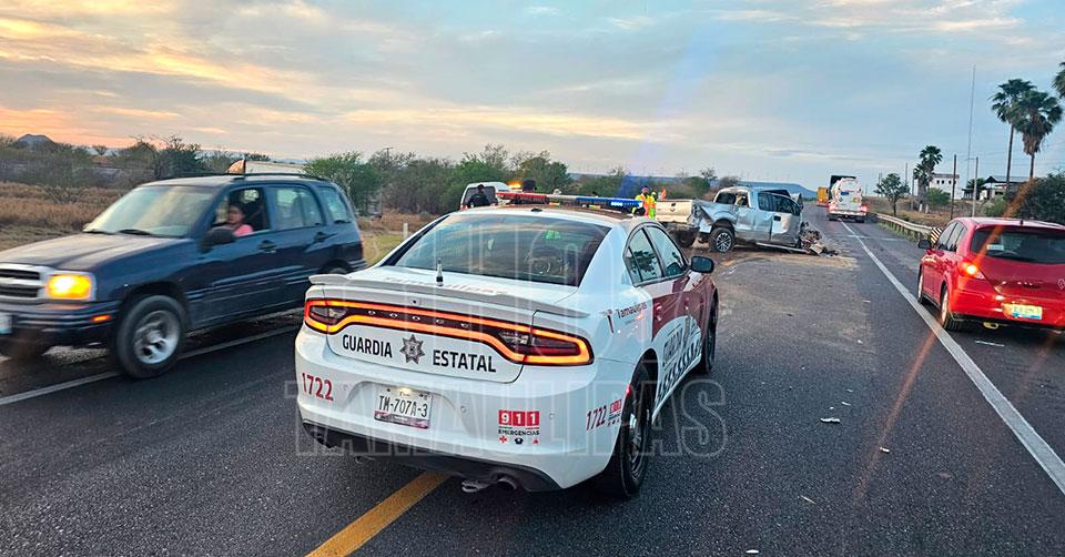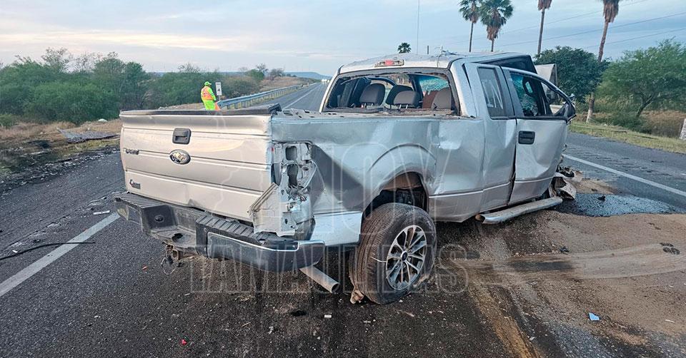 Las unidades involucradas en el percance fueron una camioneta de la marca Ford F-150 y un tractocamión Kenworth.