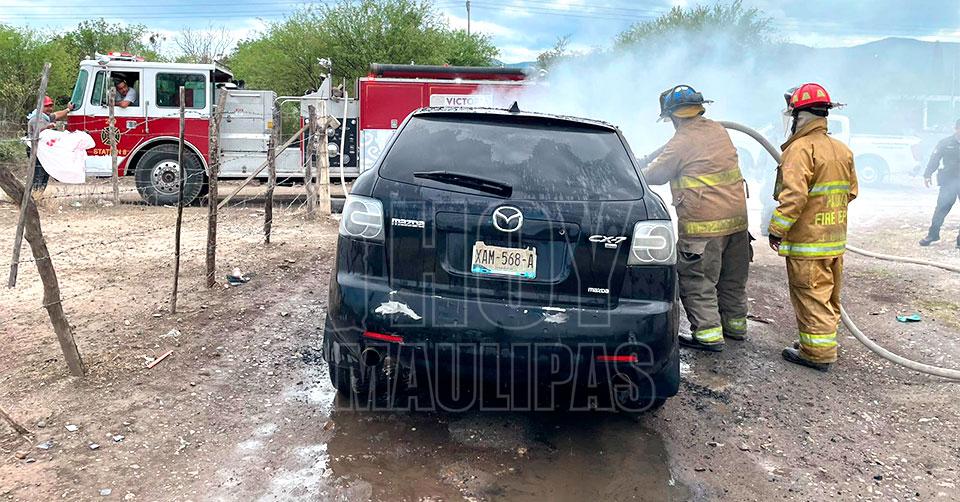 Se trató de una camioneta CX7 Mazda negra que sufrió un corto circuito en el cableado eléctrico que desató el fuego.