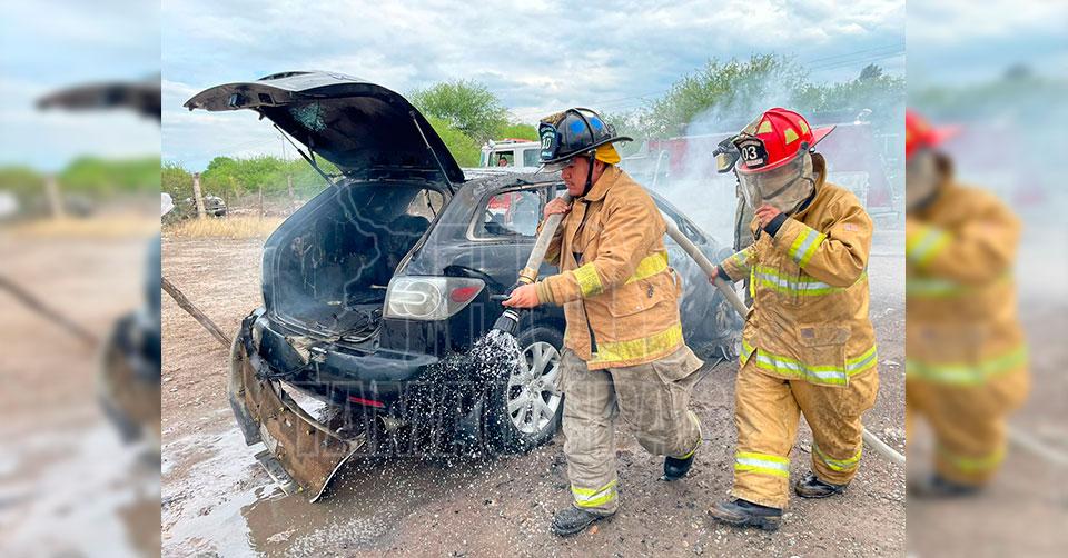 Elementos del H. Cuerpo de Bomberos arribaron al sitio a bordo de la unidad 26 Fénix y tras varias maniobras lograron sofocar las llamas.
