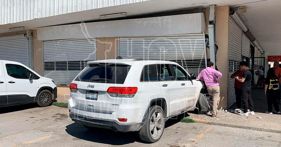 Sin embargo, en lugar de frenar, pisó el acelerador e impactó contra las cortinas de acero de su propio negocio. Debido al impacto, el Jeep quedó parcialmente dentro del local, causando una serie de daños materiales en el interior.