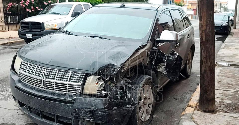 Tras el encontronazo, la persona que conducía la Lincoln huyó y la dejó estacionada en el crucero de Morelos y Washington, a una cuadra del lugar.