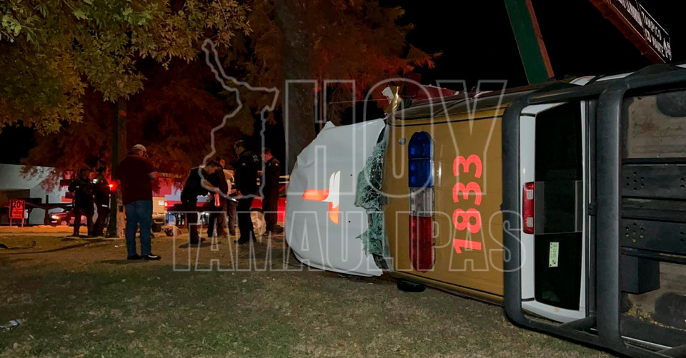 Ciudad Victoria, Tamaulipas. - Dos elementos de la Guardia Estatal resultaron lesionados esta madrugada al chocar la patrulla en la que viajaban, contra la base metálica de un anuncio y tras el impacto la unidad quedó volcada.