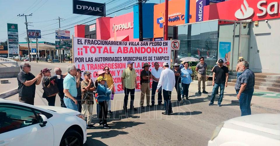 Los habitantes del Fraccionamiento Villas de San Pedro estuvieron dos horas bloqueando la vialidad, lo que hicieron, según dijeron, después que hubo una gran cantidad de oficios que se turnaron al Ayuntamiento durante cinco años, sin haber encontrado una solución en su problemática, resultando afectados los vehículos particulares y transporte público que cruzaban este sector por el carril de baja, debiendo cerrar Tránsito municipal dicho tramo.