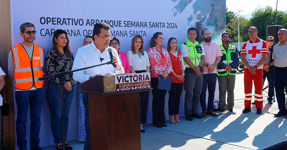 Ciudad Victoria, Tamaulipas. - Con la invitación a disfrutar de esta temporada vacacional en unión familiar y con responsabilidad, el presidente municipal de Victoria Eduardo Gattás Báez puso en marcha está viernes el operativo de seguridad y caravana Oppen Semana Santa 2024.
