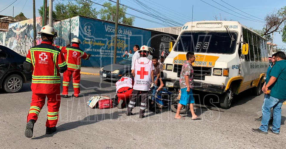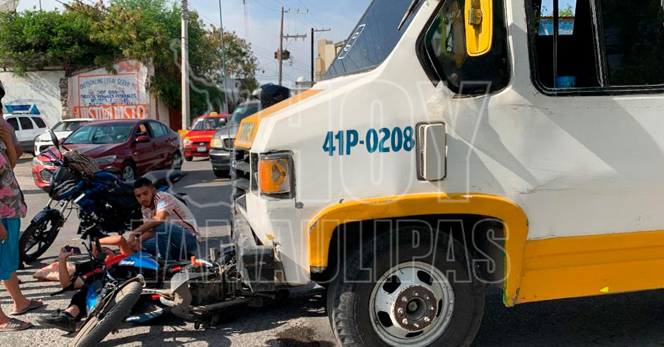 Ciudad Victoria, Tamaulipas. – Una mujer y su pareja sentimental resultaron lesionados al ser arrollados por un microbús en Ciudad Victoria, luego de que el conductor de la moto presuntamente realizó una maniobra de adelantamiento indebida.