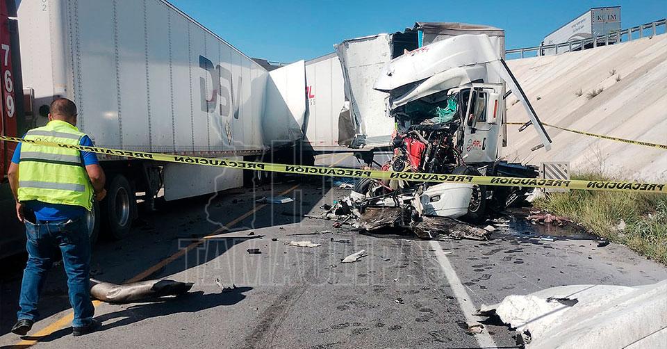 Nuevo Laredo, Tamaulipas. — Un trágico accidente por alcance en la Carretera Monterrey-Nuevo Laredo, en su tramo libre, cobró la vida de un chofer de tráiler.