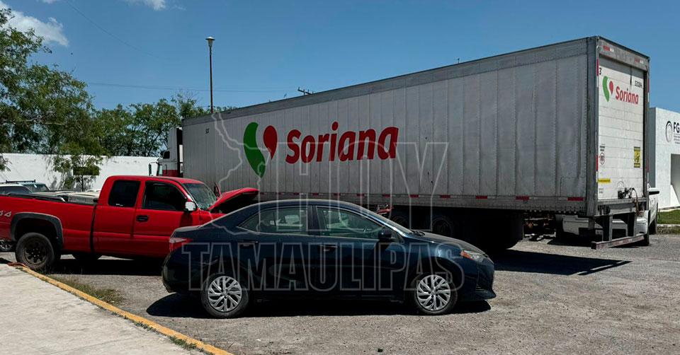 Matamoros, Tamaulipas. - Un tractocamión de la empresa Soriana fue robado y ubicado en el Periférico vía satelital.
