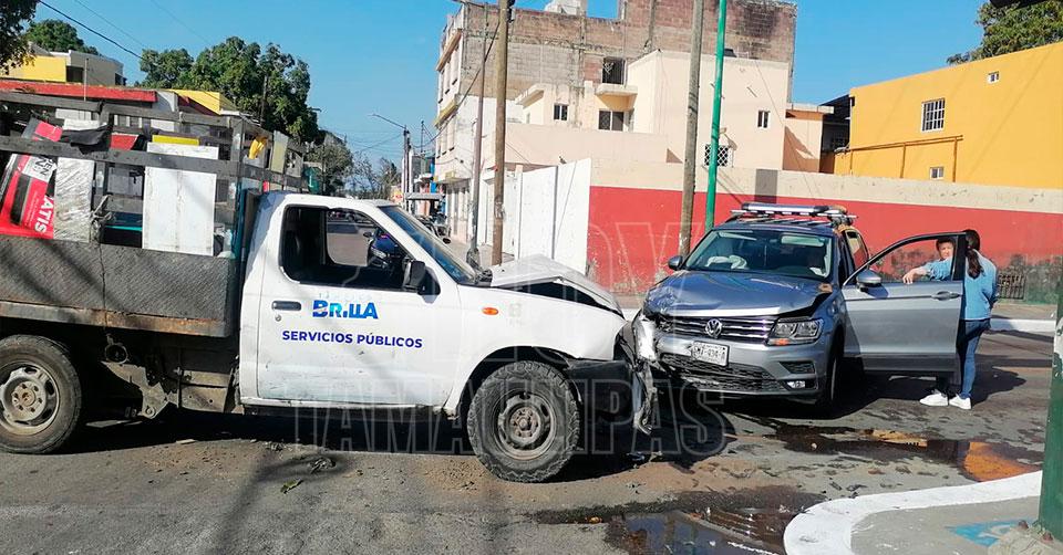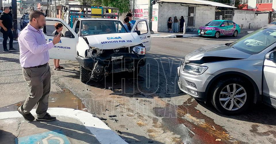 Chocan regios con camioneta de Servicios Públicos en Tampico