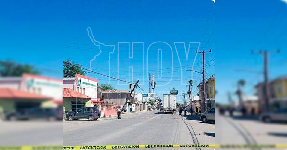 Tráiler causa daños en postes de madera en Nuevo Laredo