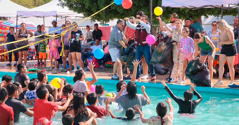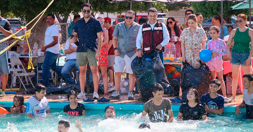 Por la tarde, Lucy y Lalo visitaron el CEDIF No. 2 dónde convivieron con familias que asistieron a la apertura de la alberca pública que dará servicio está semana, y entre las que repartieron artículos acuáticos, instalaron juegos infantiles y actividades lúdicas.