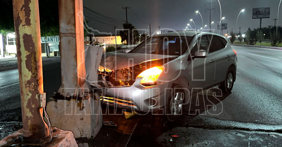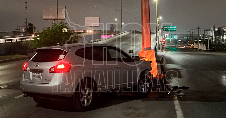 Reynosa, Tamaulipas. – Un conductor en presunto estado de ebriedad resultó con golpes leves al estrellarse contra la base de un señalamiento en el Libramiento a Monterrey, a la altura de la colonia La Amistad en Reynosa.