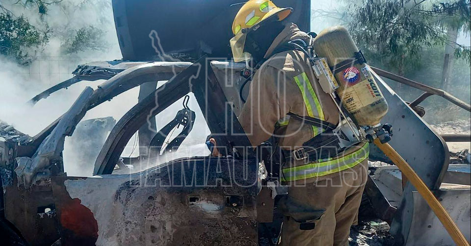Al sitio acudieron elementos de Protección Civil y Bomberos de Reynosa para controlar el fuego, que ya había consumido en su totalidad la patrulla.