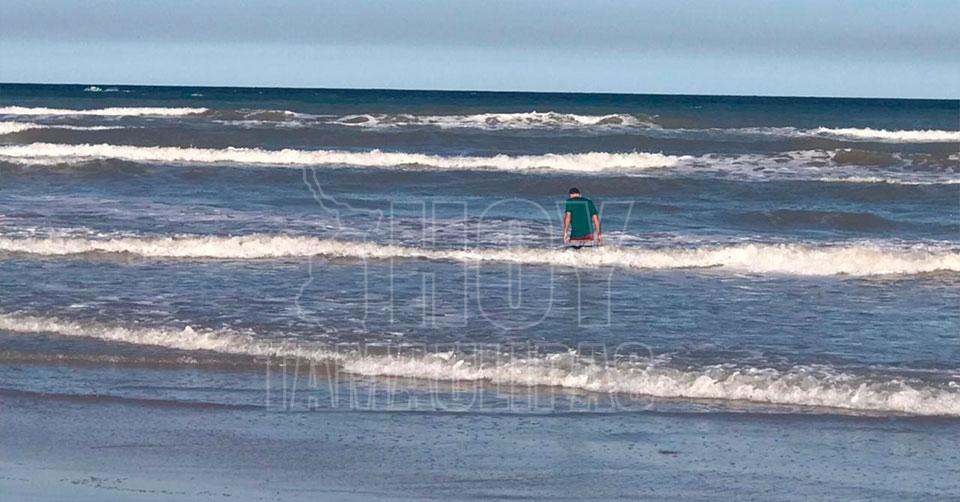 En tanto la marea estaba alta, lo que originó también que se impidiera el ingreso de los autos a la zona de mar de la Playa Bagdad en Matamoros.