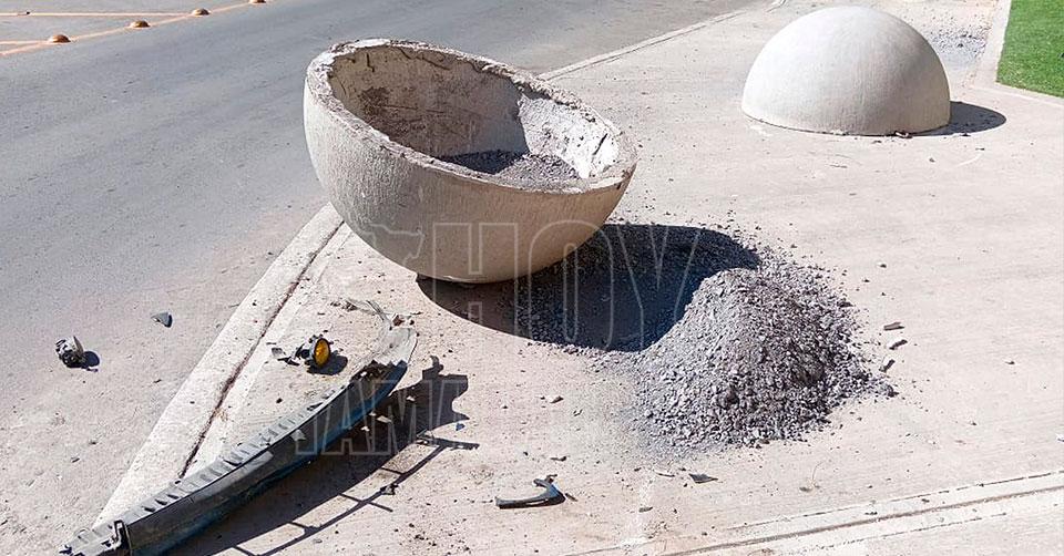 Ebrio choca contra esfera de concreto y vehículo en Nuevo Laredo