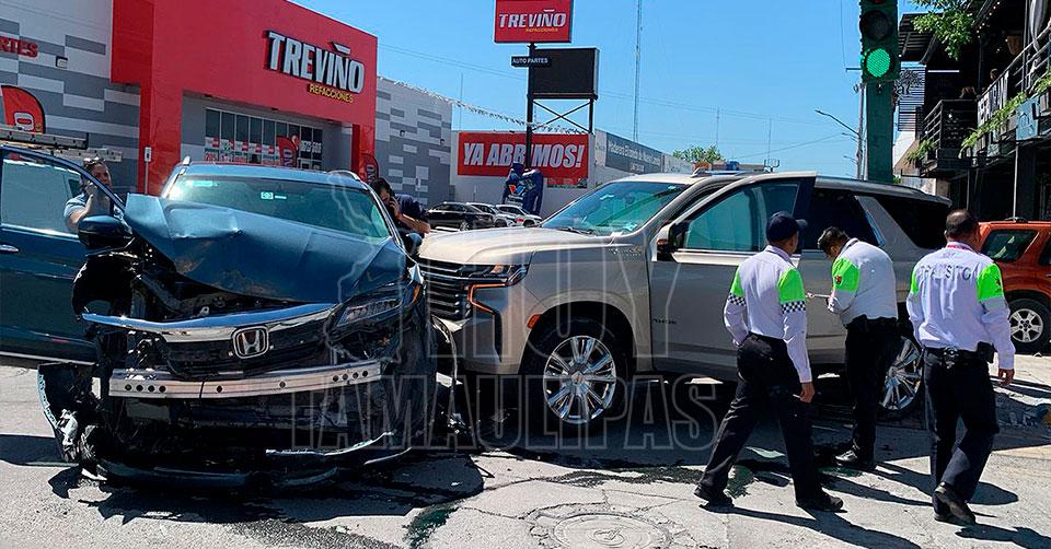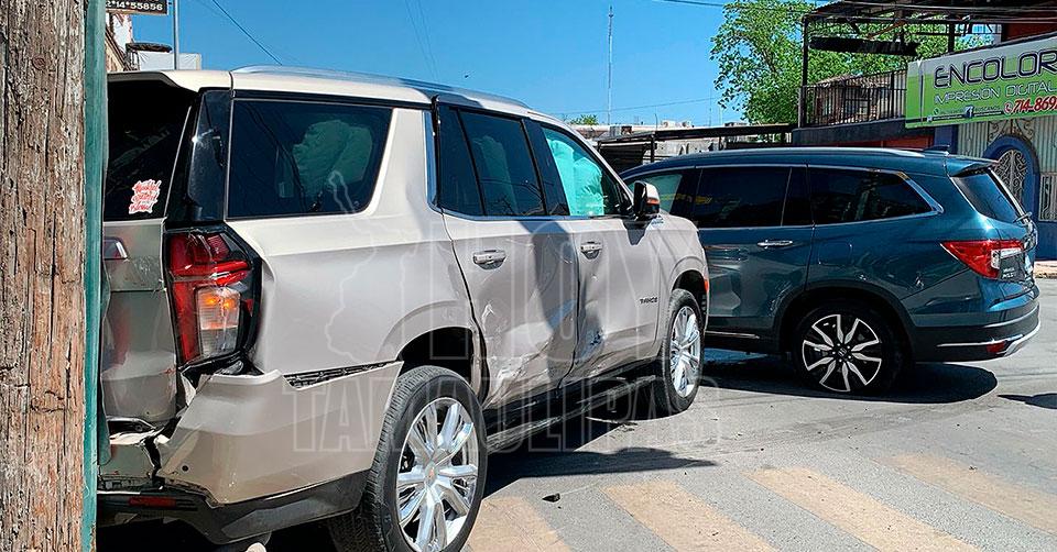 Las conductoras de las camionetas, una Honda Pilot 2021 y una Chevrolet Tahoe 2021, resultaron ilesas a pesar del fuerte impacto, ocurrido en el crucero de la Avenida Guerrero y Lincoln.