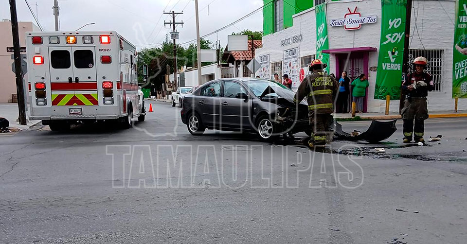 Nuevo Laredo, Tamaulipas. — Dos mujeres resultaron lesionadas en un choque con volcadura registrado hoy en un transitado crucero del sector Centro de Nuevo Laredo.