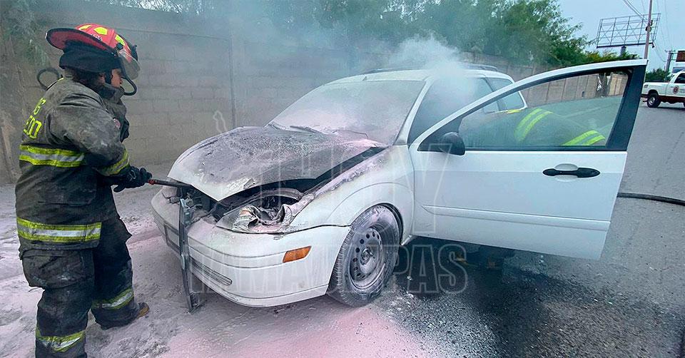 Nuevo Laredo, Tamaulipas.— Un incendio consumió gran parte de un vehículo particular en la Carretera Nacional, a la altura de la colonia Colinas del Sur en Nuevo Laredo.