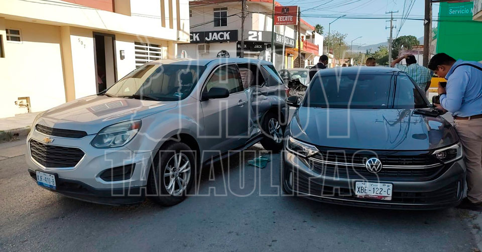 Tras ser impactada por el automóvil, la camioneta Equinox desvió su trayectoria y se estrelló contra un automóvil de la marca Volkswagen tipo Jetta que estaba estacionado en la Calle 21 entre Bravo y Allende.