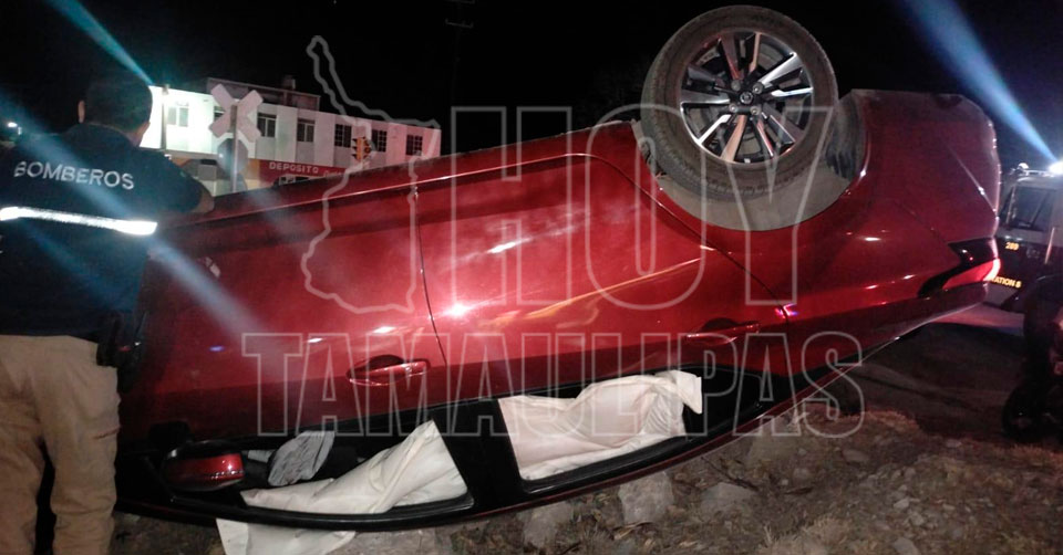 Ciudad Victoria, Tamaulipas. - Un conductor en presunto estado de ebriedad resultó lesionado al volcar su automóvil luego de que avanzó sobre las vías férreas al quedarse sin calle, en el cruce del Eje Vial y Alejandro Prieto.
