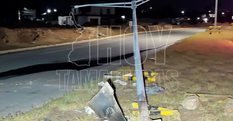 Según el reporte de los oficiales, la persona que conducía el vehículo circulaba de sur a norte por Eva Sámano, cuando perdió el control, impactándose directamente contra el poste de alumbrado.
