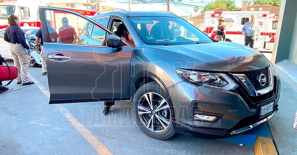 La mujer circulaba de norte a sur por Reynosa y del impacto se proyectó hacia el estacionamiento de una tienda Oxxo ubicada en el crucero, donde chocó contra una camioneta Nissan X-Trail.
