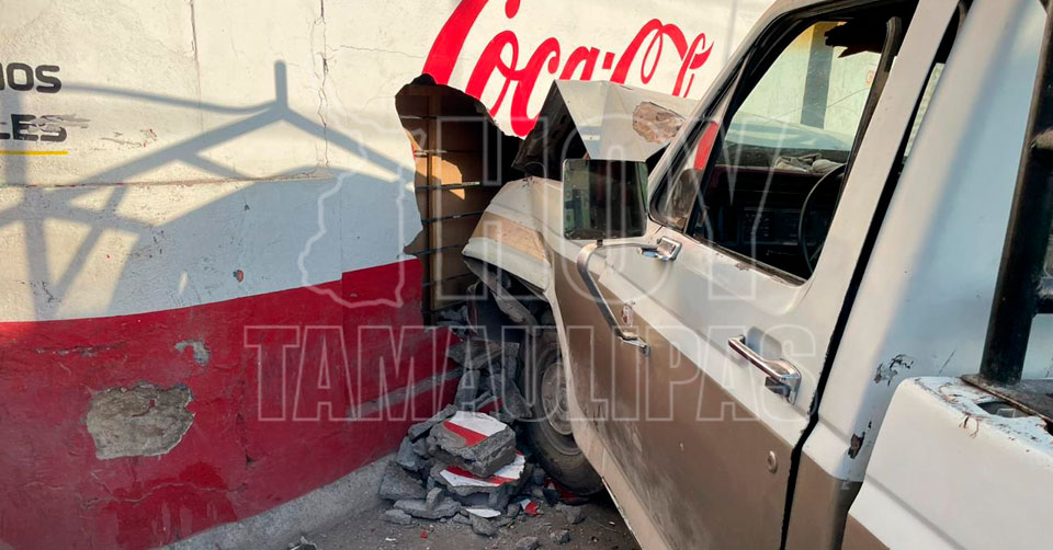 Ciudad Victoria, Tamaulipas. - El conductor de una camioneta terminó chocando con la pared de un negocio de gorditas luego de pasarse el alto y provocar el accidente vial.