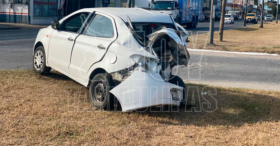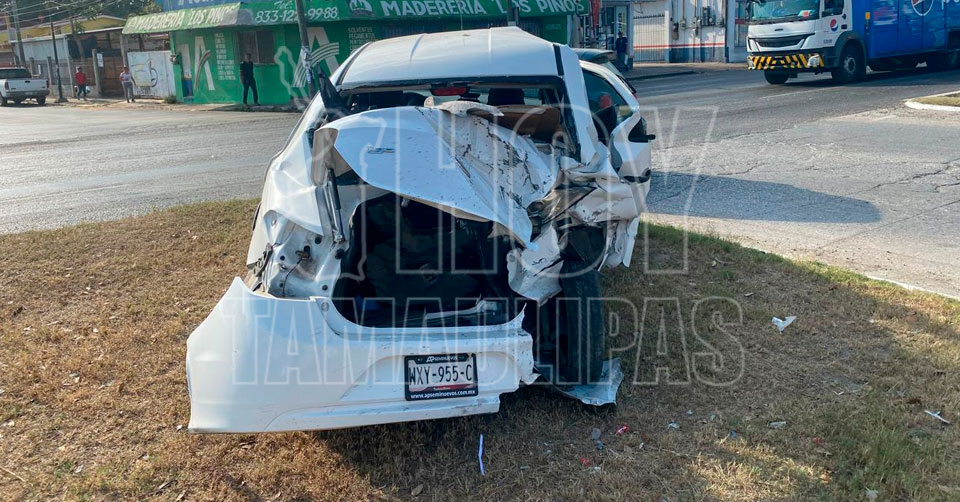 Tampico, Tamaulipas.- Los ocupantes de un vehículo habilitado como Didi resultaron, de milagro, solo con golpes leves, luego de que la unidad quedó convertida en fierros retorcidos después de ser impactado por una camioneta que se dio a la fuga en Tampico.