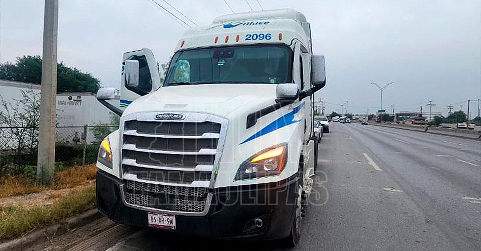 Mujer choca contra tráiler tras ponchadura de llanta en Nuevo Laredo