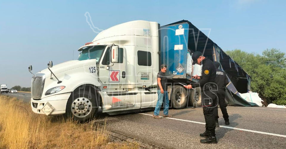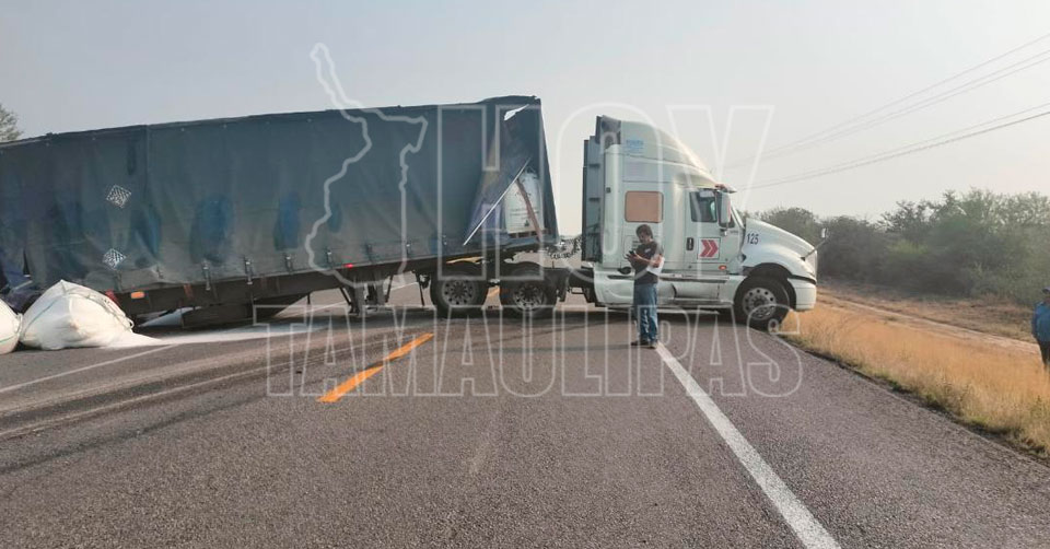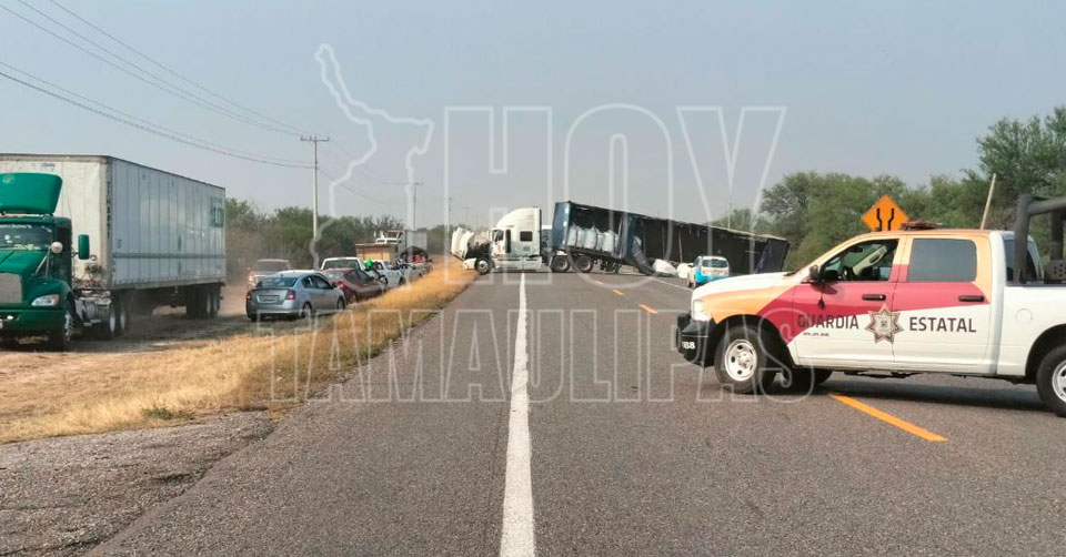 Trailero se descontrola y queda atravesado en la carretera Victoria-Matamoros
