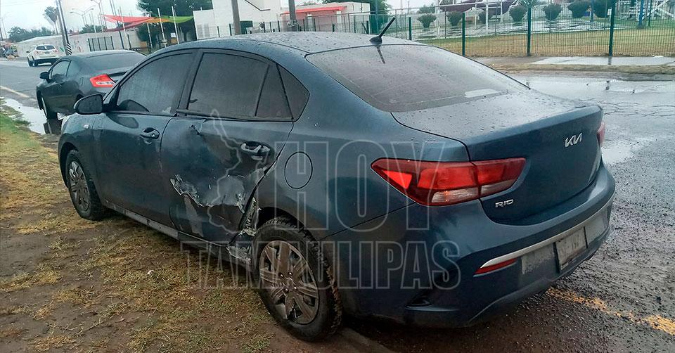Nuevo Laredo, Tamaulipas.— Un choque entre dos vehículos dejó como saldo daños materiales de consideración en la Carretera a Anáhuac, en Nuevo Laredo.