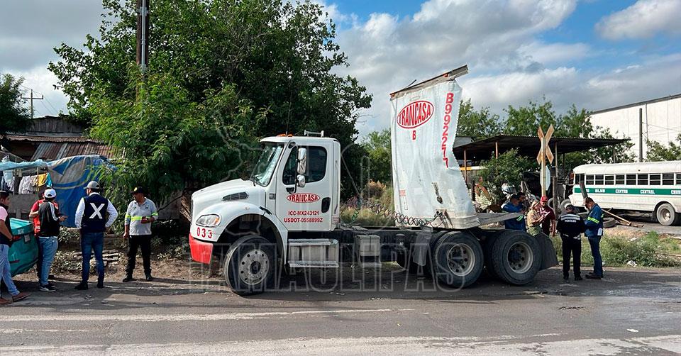 Chofer de camión intentó ganarle al tren en Reynosa y carga terminó regada