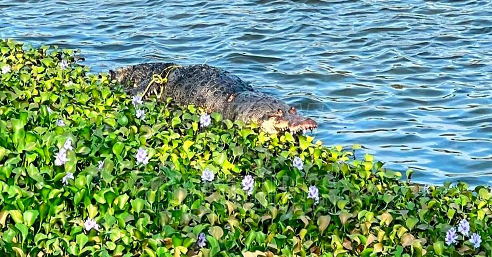 Flota cocodrilo muerto en la Laguna El Charro en Tampico