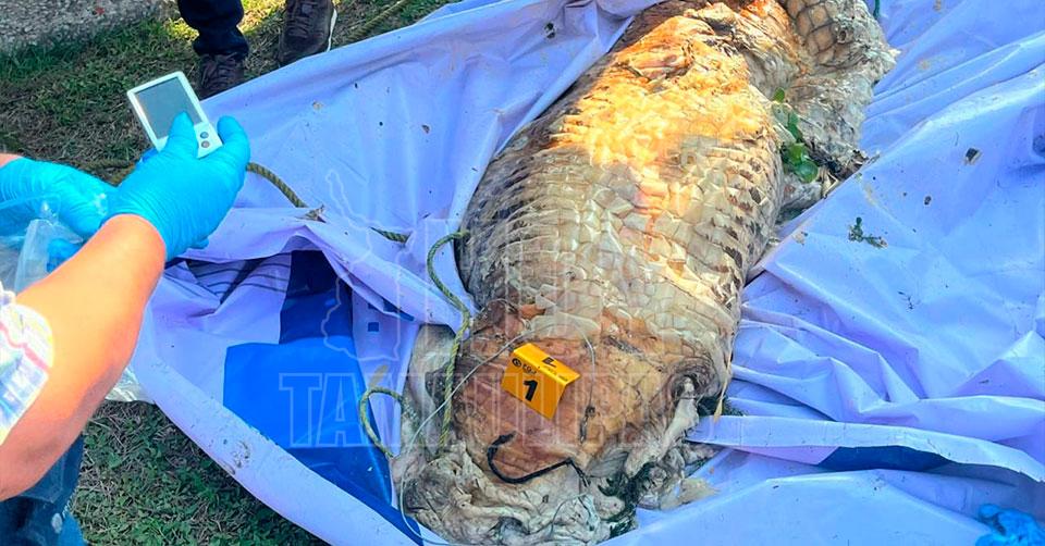De acuerdo a las primeras investigaciones, el saurio que fue avistado flotando en dicho cuerpo de agua medía entre dos metros y medio y casi tres de largo, encontrándose ya en estado de descomposición.