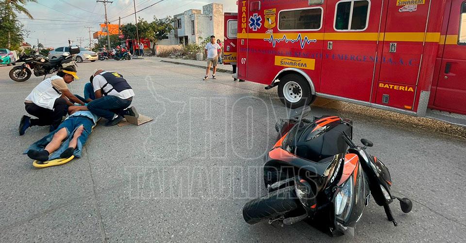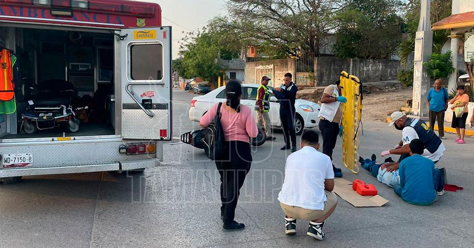 Motociclista chocó con taxi y resultó lesionado en Tampico