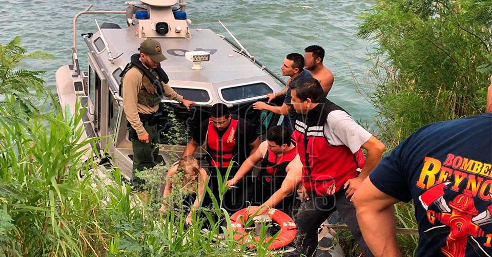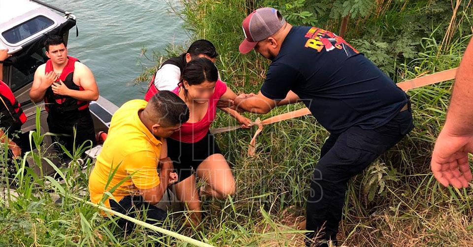 Reynosa, Tamaulipas. - Dos mujeres y una menor fueron rescatadas por elementos de la Patrulla Fronteriza de Estados Unidos y de Protección Civil de Reynosa, luego de que se quedaron varadas cuando intentaron cruzar el río Bravo en un inflable que terminó sin aire.