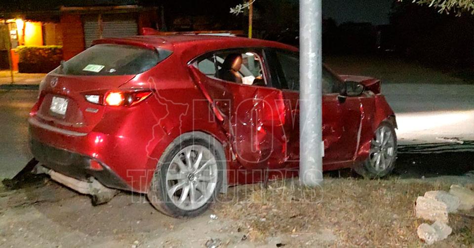 Una vez que llegó al cruce con avenida Rotaria, no hizo el alto correspondiente y acaba impactando a un vehículo de la misma marca que circulaba de poniente a oriente, y tras el encontronazo esta unidad se proyecta contra un poste metálico.