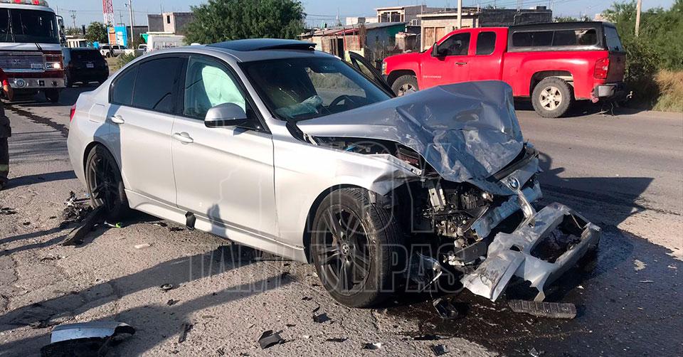 Dejan BMW abandonado tras accidente en Nuevo Laredo