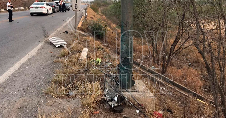 Obrera de maquiladora se duerme al volante y choca con luminaria en libramiento de Victoria