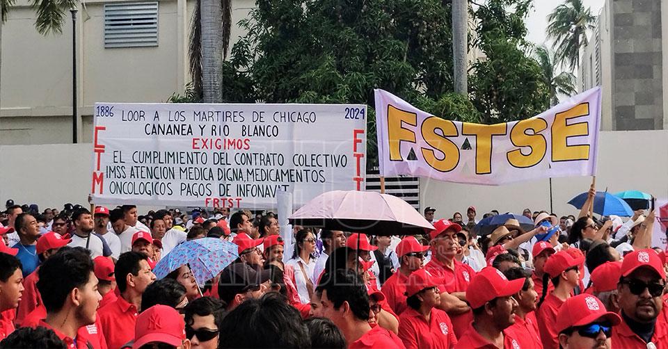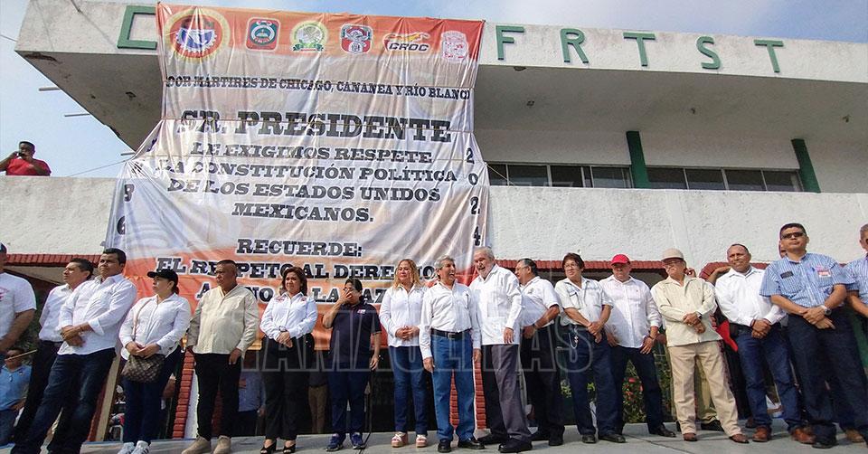 "Miren, aquí los estamos recordando, nuestros antepasados, cuando había un gobierno dictatorial encabezado por Porfirio Díaz tomaron el fusil y le pusieron el pecho a las balas, y nos heredaron el (artículo) 123 (de la Constitución), a y b", puntualizó.